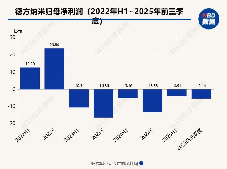 比如龙蟠科技,2023年、2024年和2025年前三季度净利润分别为亏损12.3亿元、6.36亿元、1.1亿元;万润新能净利润分别为亏损15.04亿元、8.7亿元、3.52亿元;德方纳米净利润分别为亏损16.36亿元、13.38亿元、5.27亿元。