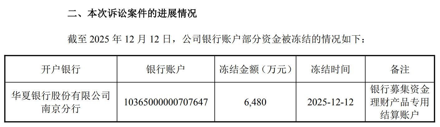 根据诉讼进展公告,自原告向诉讼机构提出财产保全申请后,目前诉讼机构已裁定冻结测绘股份名下价值6480万元的存款或查封、扣押相应价值的财产。测绘股份在公告中称,本次冻结金额占公司净资产的4.60%,涉及资金冻结的银行账户为募集资金理财产品专用结算账户,不影响公司日常生产经营活动的正常开展。