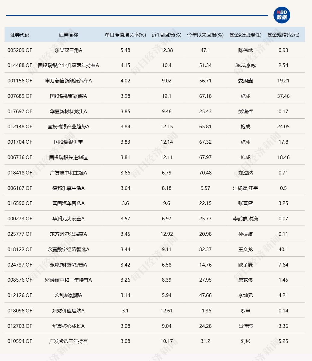 市场冲高回落,多只新能源主题基金涨幅领先