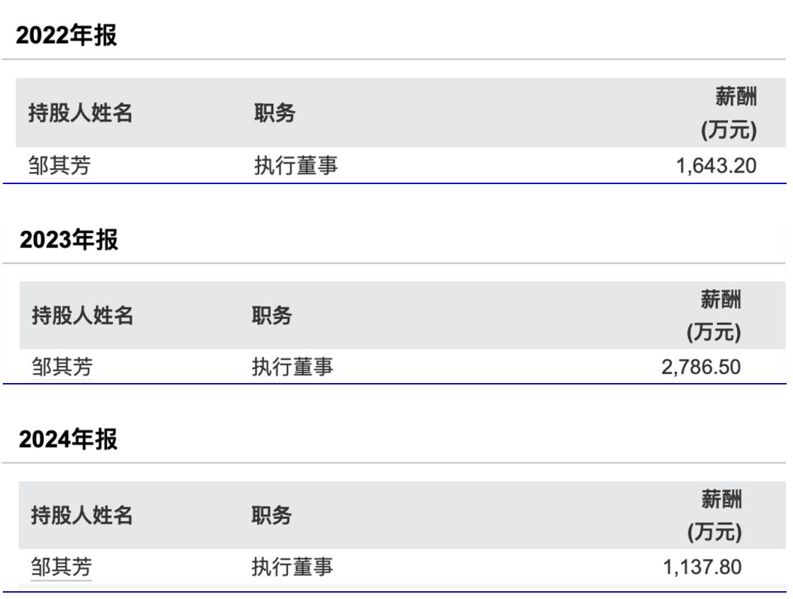 2022年至2024年邹其芳薪酬情况 图片来源:Wind