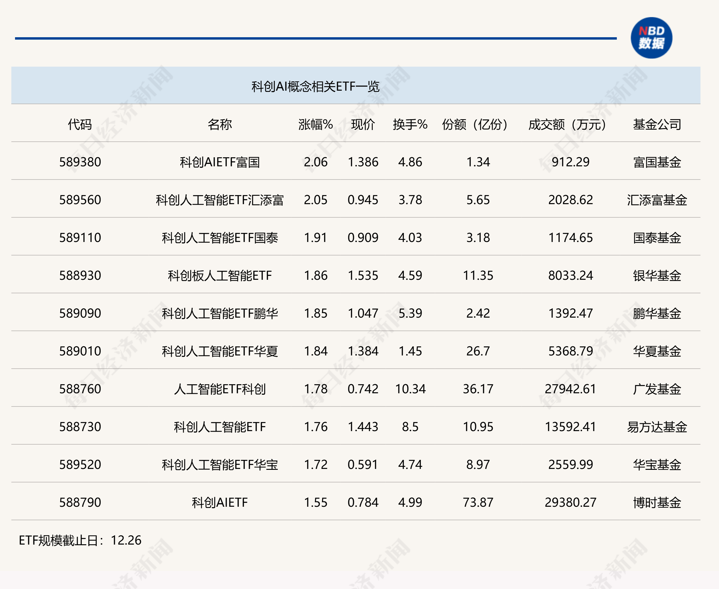 行业ETF风向标丨多行业ETF交投活跃,两只科创人工智能ETF半日涨幅超2%