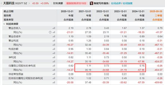 天箭科技12月29日晚公告,相关军品价格调整,预计调减当期营收约2.56亿元,影响归母净利润约-2.09亿元,在2025年年报披露后,股票交易或被实施退市风险警示。公司因搭上“商业航天”概念,近期受资金追捧,11月24日至12月29日收获4个涨停板。此外,天箭科技归母净利润已连续三年下滑,2025年前三季度营收和净利润也均同比下降。