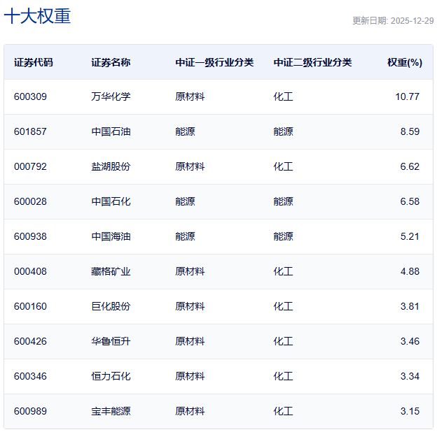 中证石化产业指数主要权重股