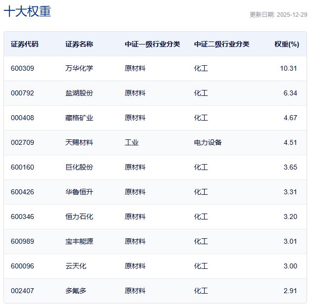 中证细分化工产业主题指数主要权重股