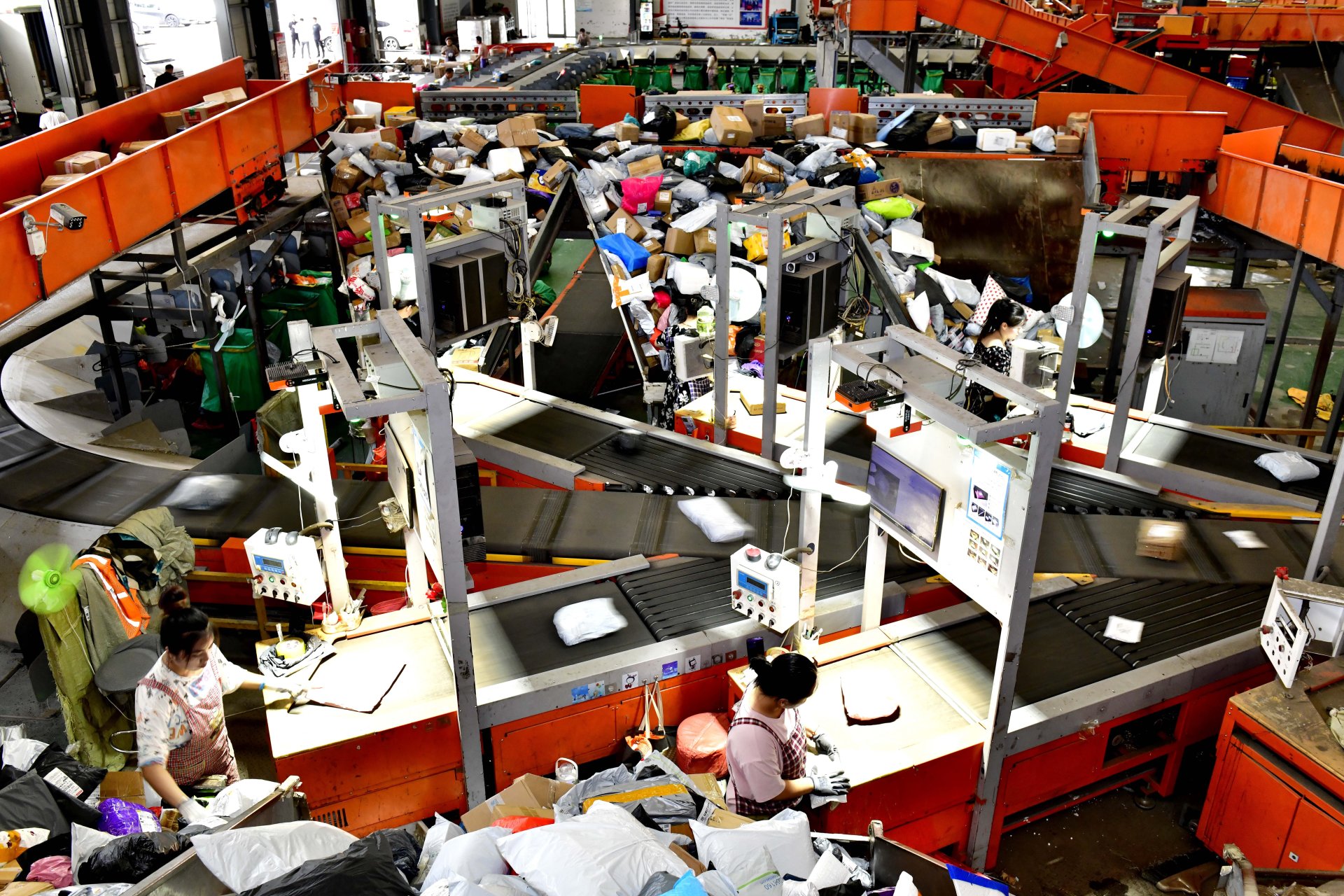 一家物流服务中心内,工作人员正分拣快递 新华社记者 郭绪雷 摄