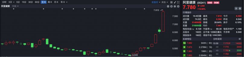 此外,阿里健康(HK00241)大涨18.91%。