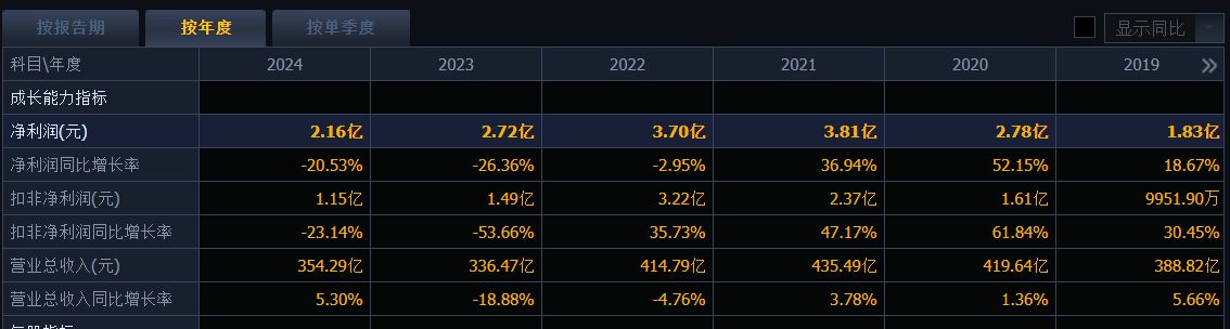 2022年至2024年,东方创业归母净利润连续三年下降,2024年归母净利润为2.16亿元,较2021年高点回落约43.31%;2025年前三季度业绩继续微降,实现归母净利润1.80亿元,同比下降4.19%。