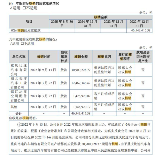 在这背后,是一笔笔艰难的回款。截至2025年上半年末,公司单项计提坏账合计仍达1.19亿元。这些资金主要“套牢”在那些已经破产或陷入经营困境的客户身上,如北汽瑞翔汽车有限公司(前身为北汽银翔)等。