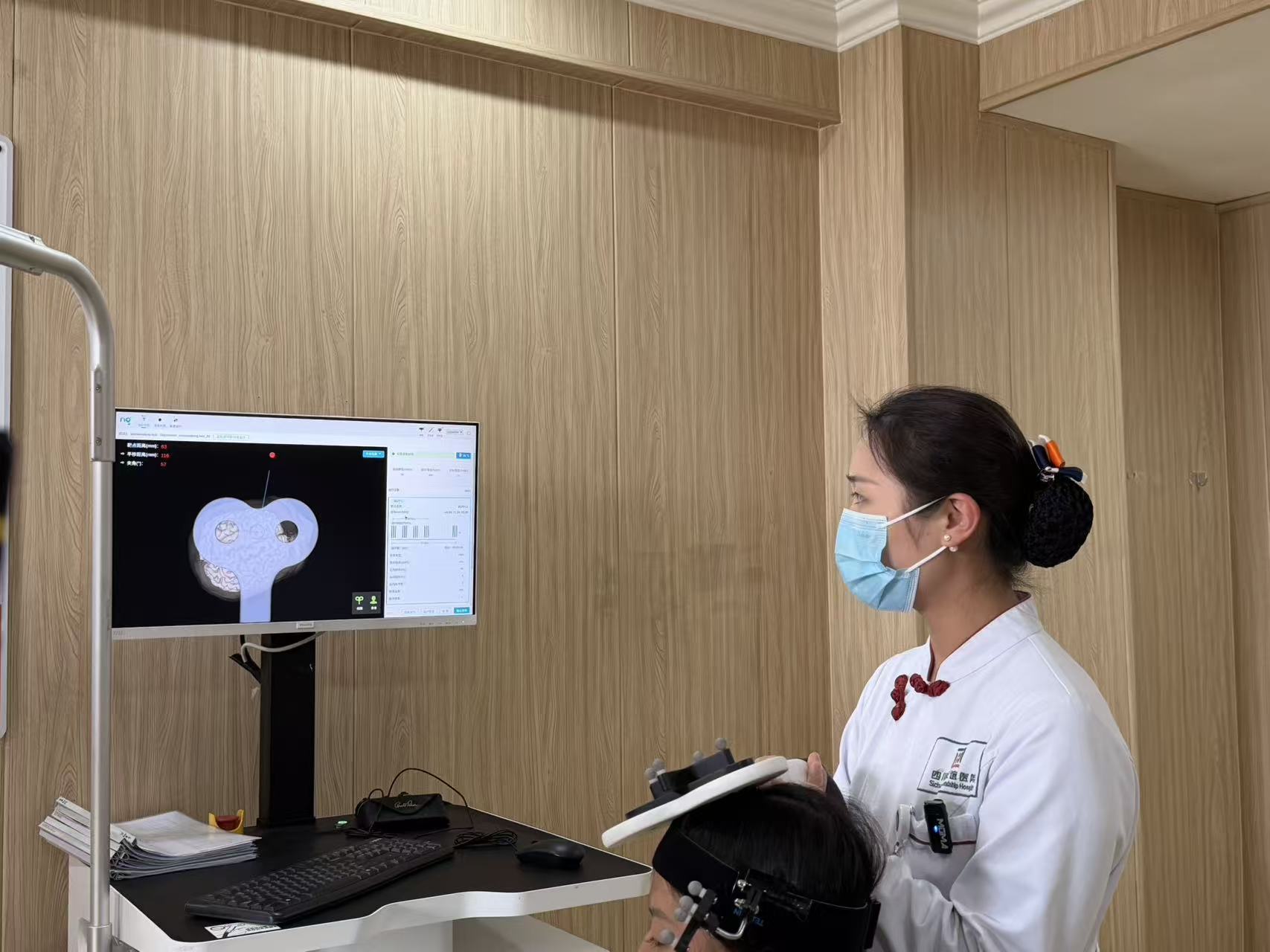 患者在接受脑机接口治疗 图片来源:每经记者 陈星 摄