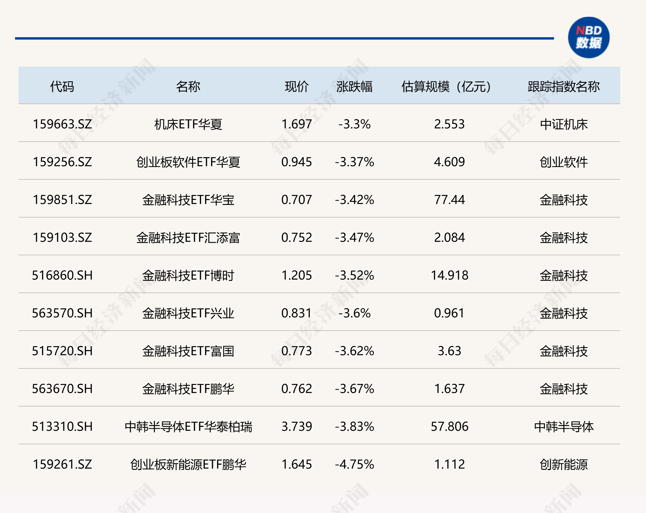 下跌方面,机床、金融科技等相关ETF跌超3%。